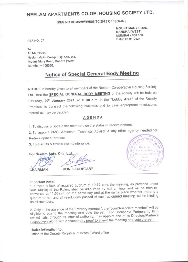 Neelam apartments is a residential society in Bandra West, Mumbai. Check out some of the features of Neelam Apartment housing society: